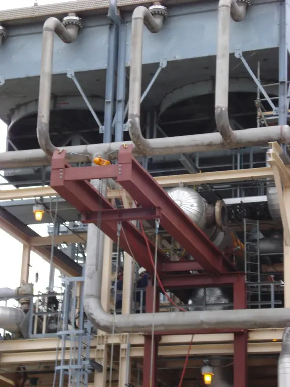 Our firm prepared the detailed Engineering Design Plans, Shop Drawings, Erection, Extraction, Insertion and Lift Procedures. Within the design plans Huval & Associates devised a cantilevered beam extraction and exchanger sled 30 feet above grade with steel columns and tie rods to support it. We also engineered a rolling hydraulic jacking system in order to avoid nozzle conflicts with tight clearance issues.